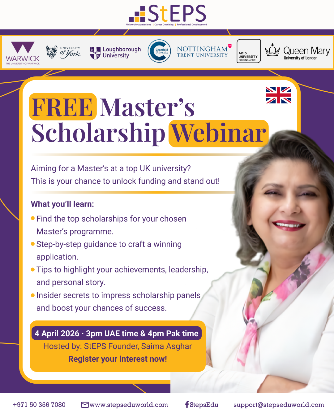 Superb experience with StEPS - Ms. Saima and her team (thanks Faiza!) were excellent in guiding throughout the application process & gave solid advice. Ms. Saima is incredibly knowledgeable about the entire Master's application cycle from administrative processes all the way to the actual application itself - & knows exactly how to structure & position the CV & application, which is exactly what's needed. Expect no fluff, but a lot of clarity & honest feedback about your application's blind spots - so grateful. Thank you so much!